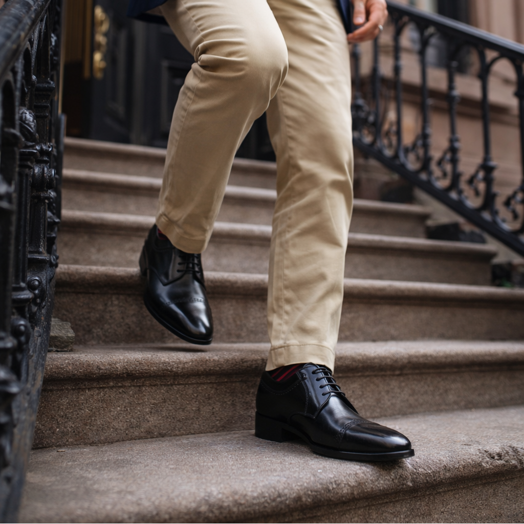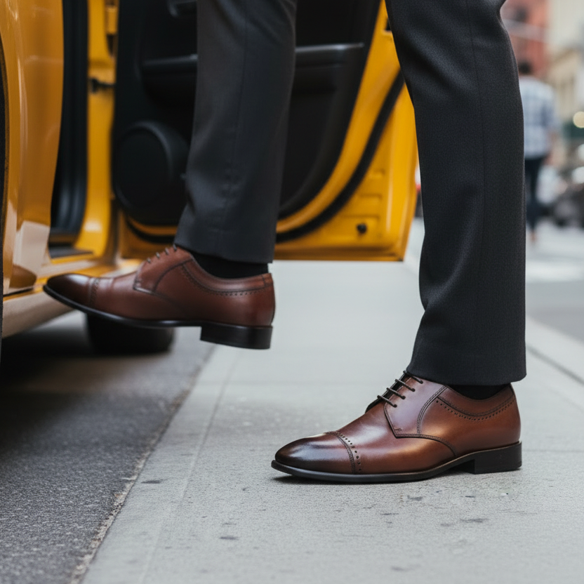 Classic cap-toe silhouette with subtle brogue accents.