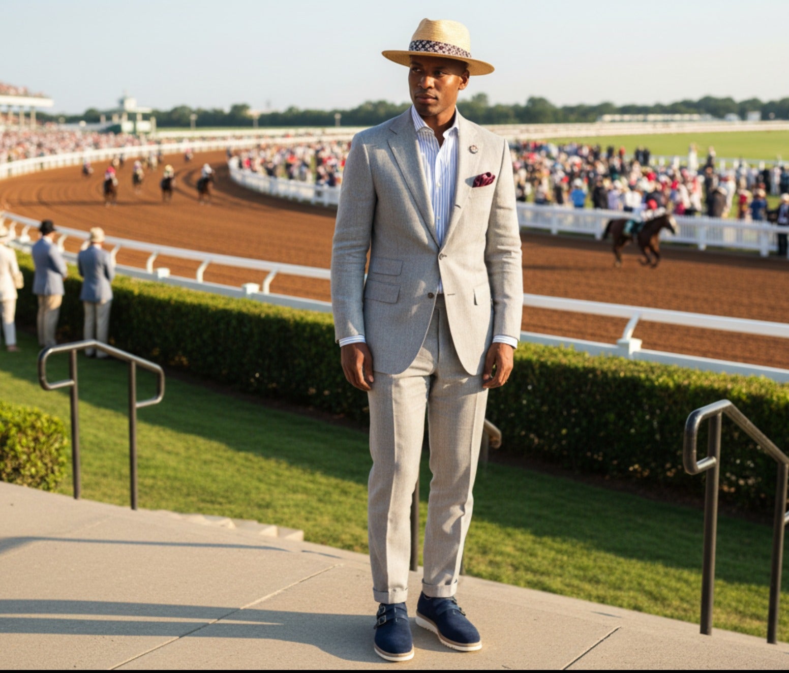 The cream colored Vibram sole contrasts elegantly with the navy blue suede upper. The sole is renowned for its durability and long-lasting wear, ensuring that the shoe is as resilient as iti s stylish